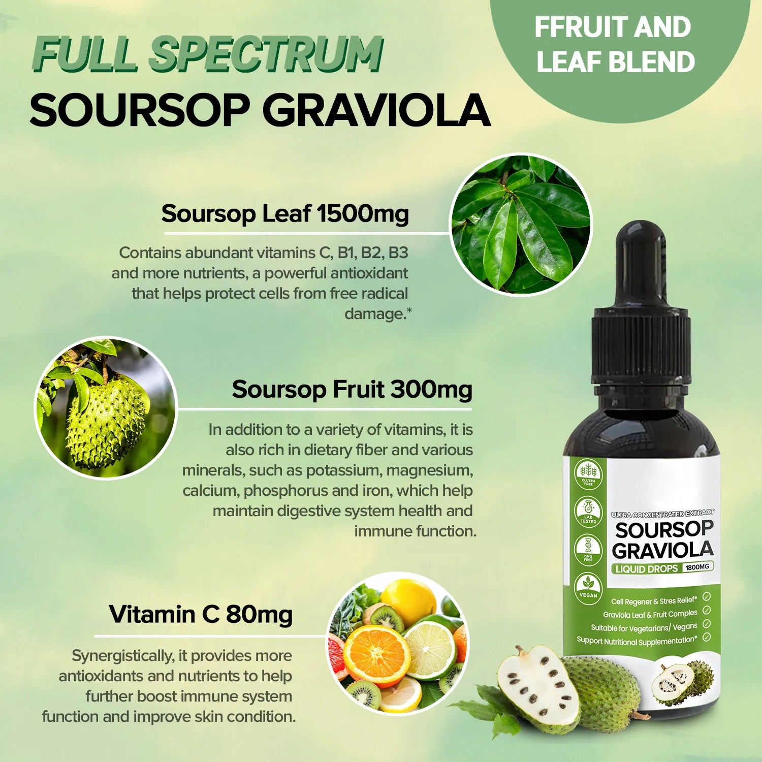 Our Organic Soursop Extract is a potent supplement made from 100% organic soursop (graviola) fruit. It's designed to support immune function, aid digestion, promote detoxification, and enhance overall wellness.