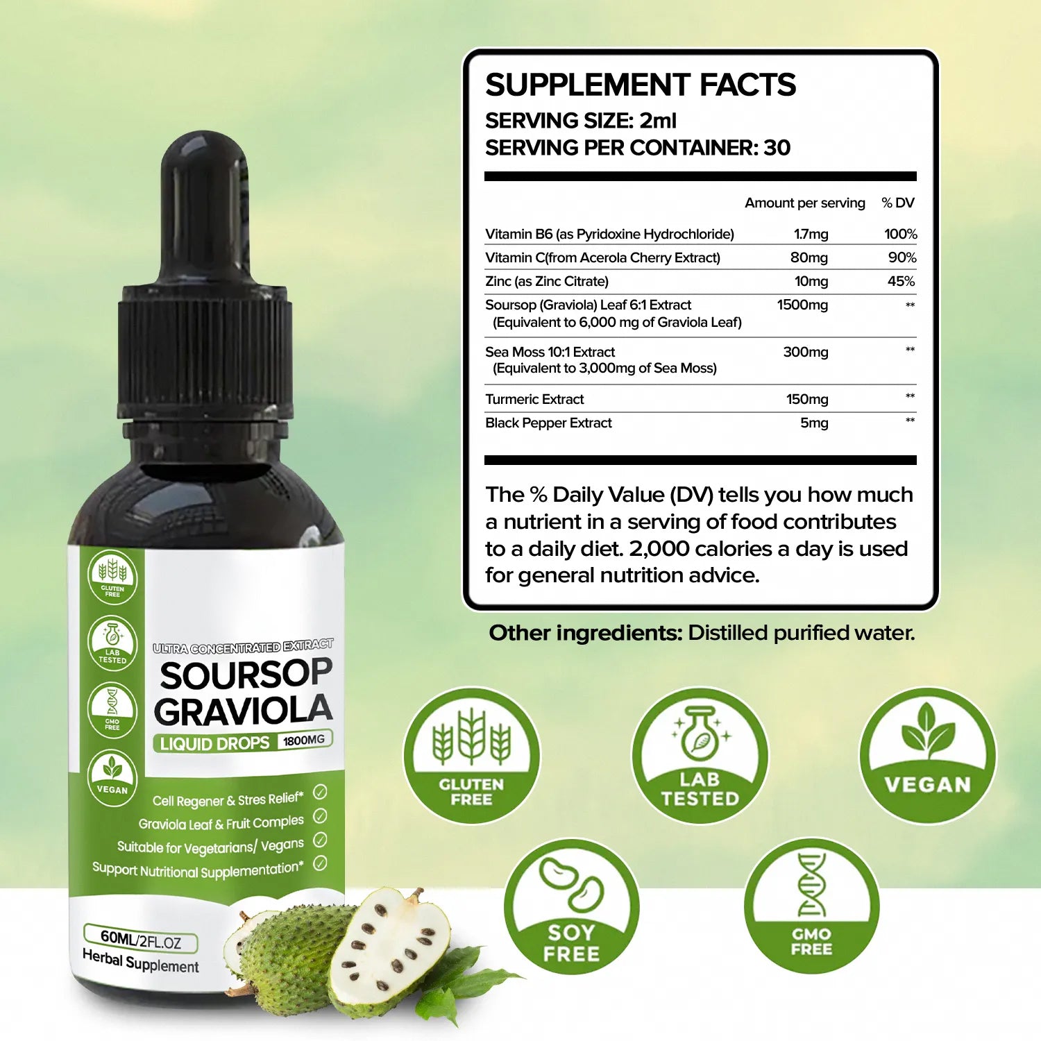 Unlock the incredible benefits of100% Pure Organic Soursop Extract, a natural powerhouse packed with antioxidants and essential nutrients. Sourced from the finest organic soursop fruits, this extract isfree from chemicals and additives, ensuring purity and quality in every drop