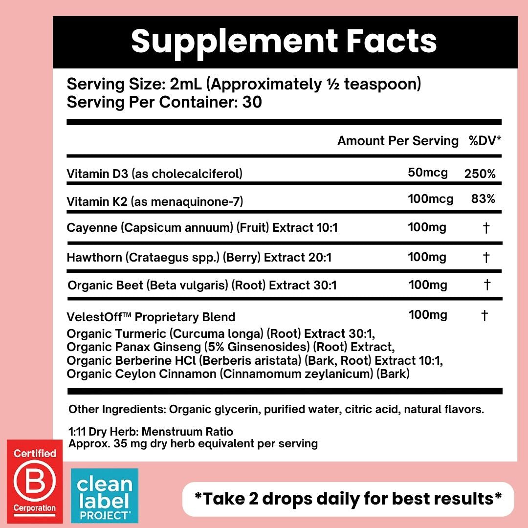 Just place 2 drops under your tongue once daily, preferably with a meal. That’s it — no pills, no guesswork.