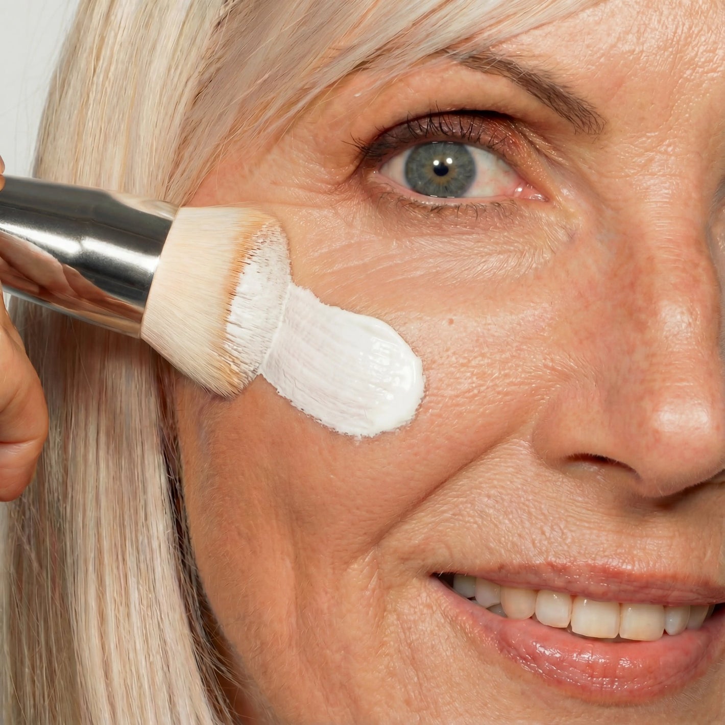 For optimal results, we recommend applying the foundation with a brush. This technique helps the pigment particles penetrate deeper into the skin, preventing any white cast.