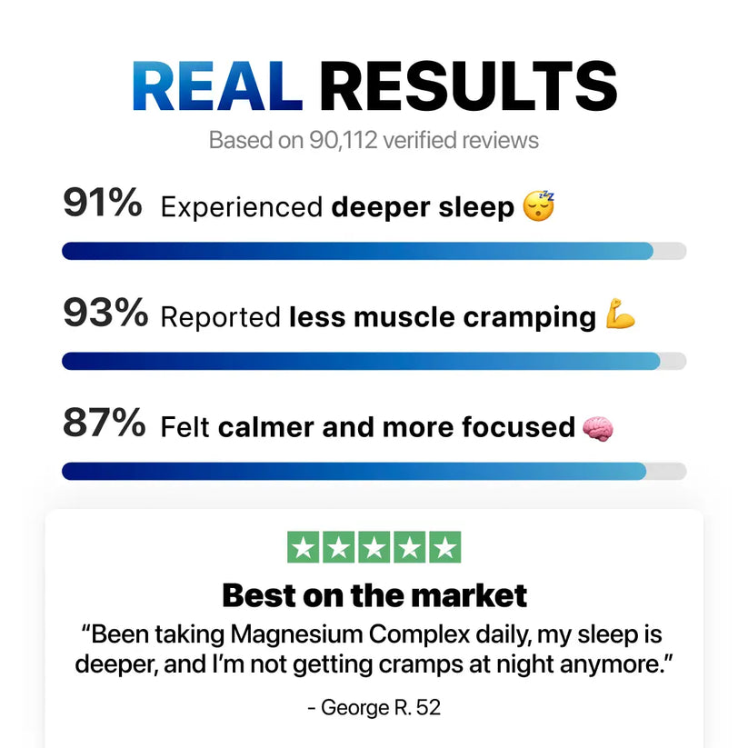 No. It’s made with safe ingredients and clinically dosed. This formula is a balanced blend of the 8 most important forms of magnesium to support your whole body without the side effects that come from low-quality, single-form options.